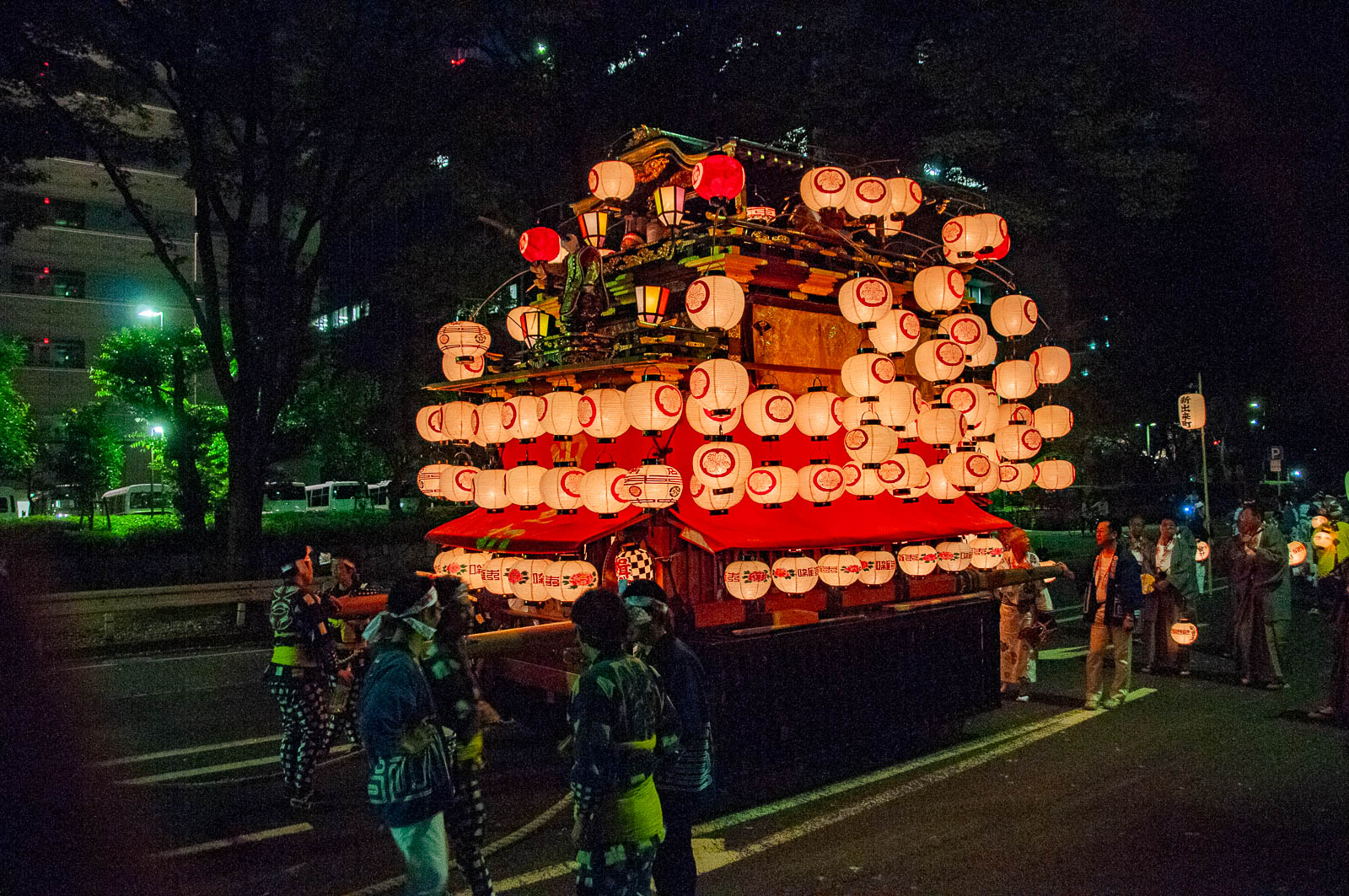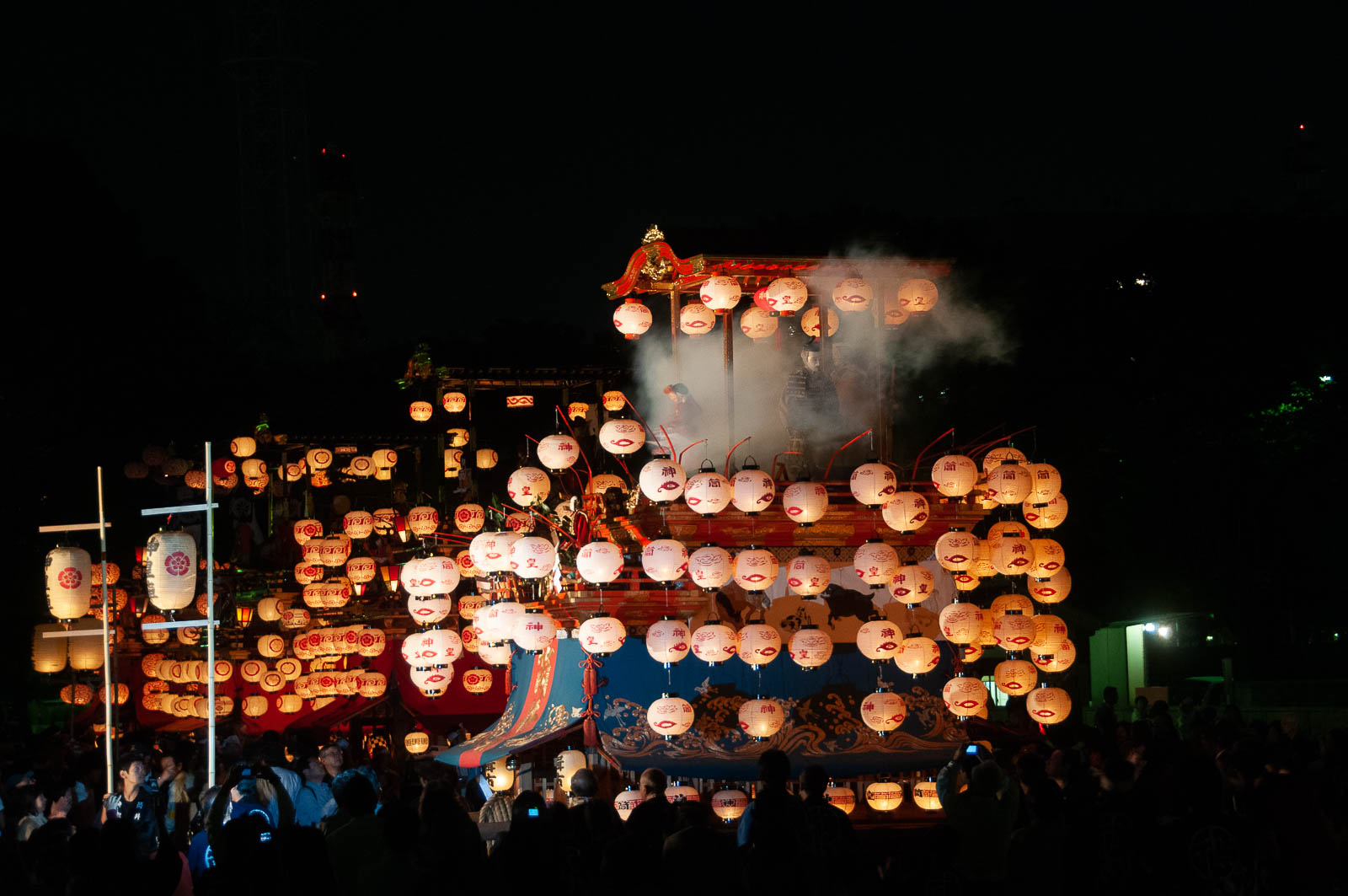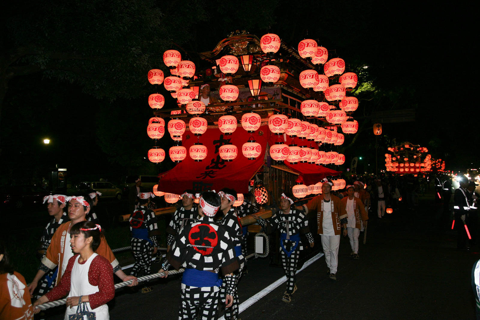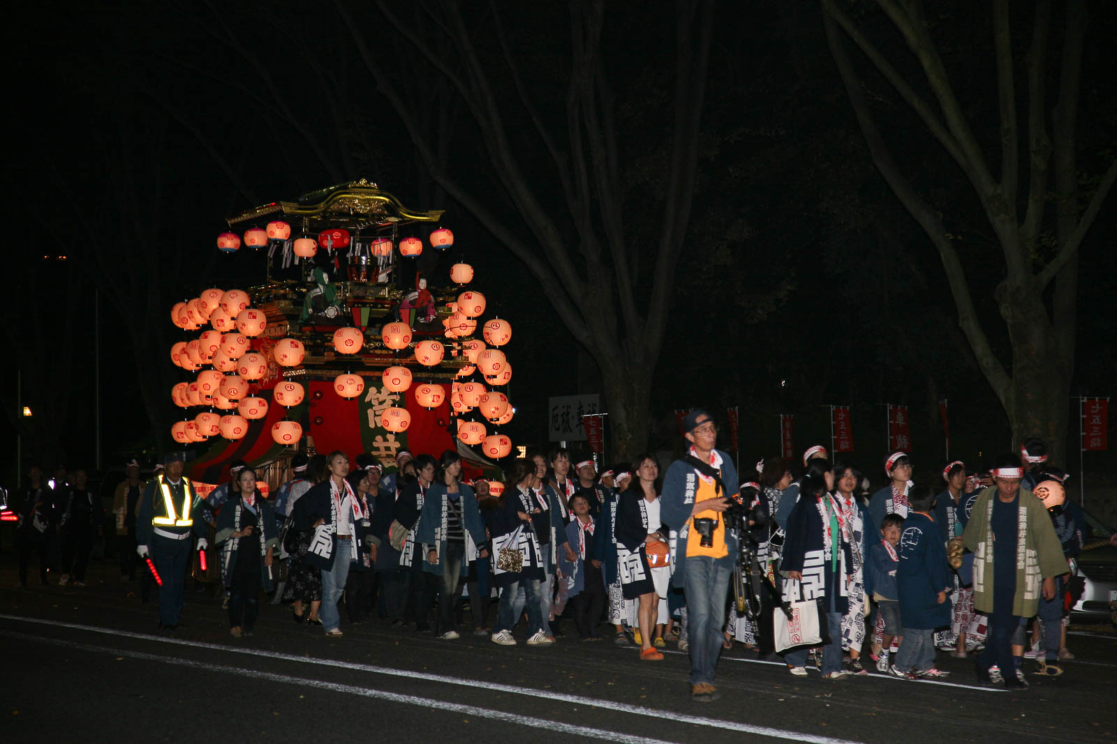 那古野神社の奉納を終えた山車は、提灯を揺らしながら本町通を北上し、本町橋を渡って本町御門をくぐる。
